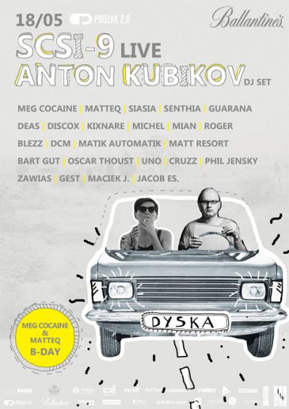 Czoowi przedstawiciele rosyjskiej elektroniki SCSI-9 czyli Anton Kublikov i Maxim Milyutenko po raz pierwszy w Polsce zagraj 18 maja w krakowskim klubie Prozak 2.0. Oprcz samego livea usyszymy dj set Antona, a take kilkunastu polskich djs, ktrzy w ten sposb witowa bd urodziny Meg Cocaine i Matteqa.