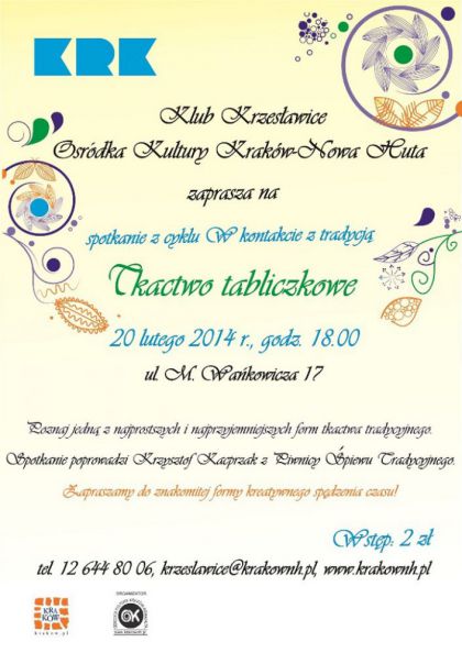 Kolejne wydarzenie z cyklu W kontakcie z tradycj, organizowanego przez Klub Krzesawice Orodka Kultury Krakw-Nowa Huta (ul. M. Wakowicza 17).