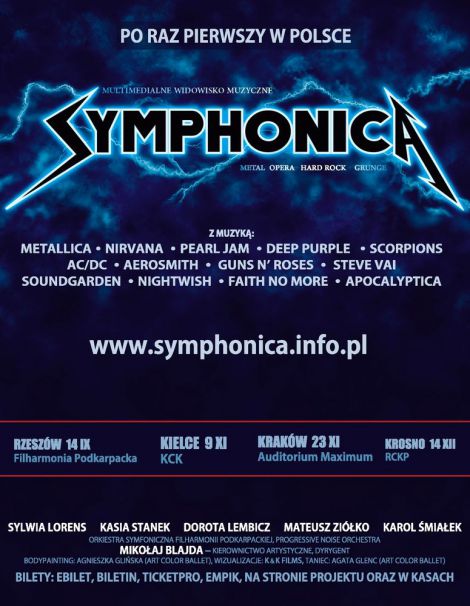 | Multimedialne Widowisko Muzyczne SYMPHONICA to wyjtkowa w swoim rodzaju prba zblienia pozornie odlegych muzycznie planet. W wiecie tym potga brzmienia elektrycznych gitar wspgra z subtelnym i penym klasy piewem operowym, a wszystko wypenia brzmienie orkiestry symfonicznej. Dwik, ruch, obraz i wiato tworz metafizyczny spektakl, a w tej niezwykej oprawie usysze mona ponadczasowe rockowe i metalowe ballady takich grup jak Metal(...) ... więcej » |