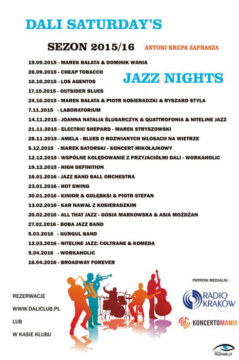Serdecznie zapraszamy na nowy sezon z cyklu Dali Saturday's Jazz Nights 2015/2016.