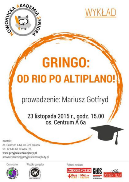 Nowohucka Akademia Seniora zaprasza na slajdowisko z ostatniej samotnej podry krakowskiego podrnika Mariusza Gotfryda po Brazylii, Peru, Boliwii i Chile.