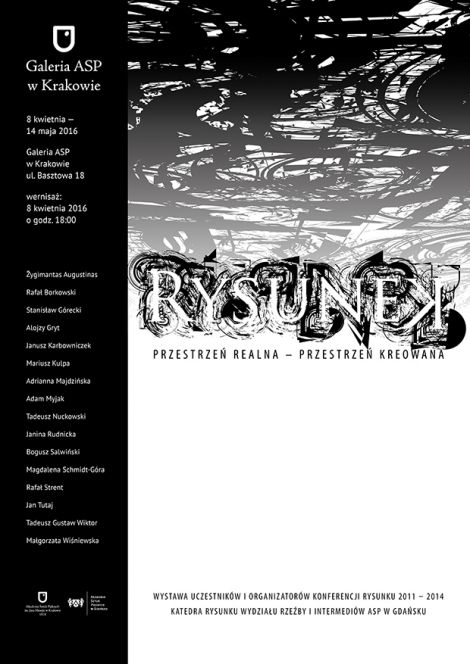 Rysunek przestrze realna przestrze kreowana to prezentacja dzie szesnastu artystw, uczestnikw i organizatorw cyklu konferencji pod tym samym tytuem, zainicjowanych i organizowanych w latach 2011-2014 przez Katedr Rysunku Wydziau Rzeby i Intermediw ASP w Gdasku.