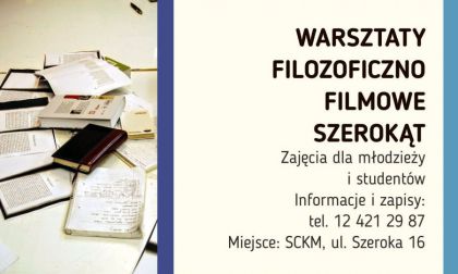 | Zapraszamy modzie i studentw na warsztaty filozoficzno - filmowe "Szerokt". Uczestnicy maj moliwo zapoznania si z myl filozoficzn, filmow, teoria kultury, zajcia warsztatowe umoliwiaj im dyskusj z twrcami i artystami, rozwijaj umiejtnoci analityczne i interpretacyjne i ksztatujce wiadomy odbir przekazu filmowego, a take moliwoci zastosowania wiedzy filozoficznej do odkrywania znacze zawartych w tkance dziea filmowego(...) ... więcej » |