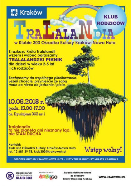 | 10 czerwca w godz. 15.00-17.00 na Tralalandzkie Piknikowanie. Jaka jest ulubiona potrawa Krla Tralalandii? Czy jest ona sodka, czy te moe bardzo kwana? Czy Krl Tralalandii lubi owoce? A moe woli warzywa? I czy nasze ulubione potrawy zasmakuj Krlowi? W niedzielne popoudnie zapraszamy na wsplne piknikowanie, podczas ktrego poznamy odpowied na wszystkie zadane pytania. Zachcamy do przyniesienia maego co nieco, aby podzieli si pysz(...) ... więcej » |