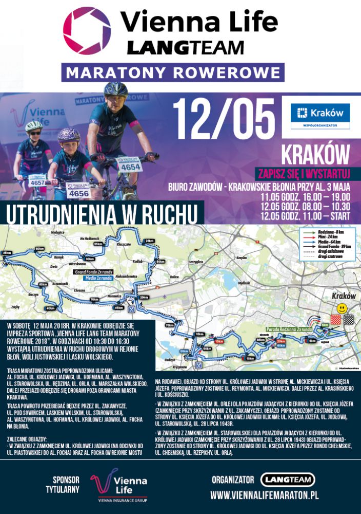 VIENNA LIFE LANG TEAM MARATONY ROWEROWE - informacja o utrudnieniach w ruchu