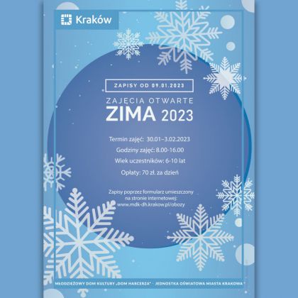 Zapisy na zajęcia odbywają się od 9 stycznia poprzez formularz umieszczony na stronie internetowej http://www.mdk-dh.krakow.pl/obozy.