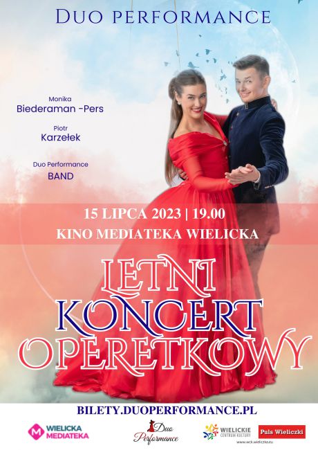 są znakomici soliści, którzy szturmem zdobywają serca publiczności w całym kraju– Monika Biederman-Pers (sopran) oraz Piotr Karzełek (baryton). Artyści tworzą zgrany i bardzo efektowny duet wokalno-taneczny „DUO PERFORMANCE”, którego występy każdorazowo spotykają się z owacyjnym aplauzem.
