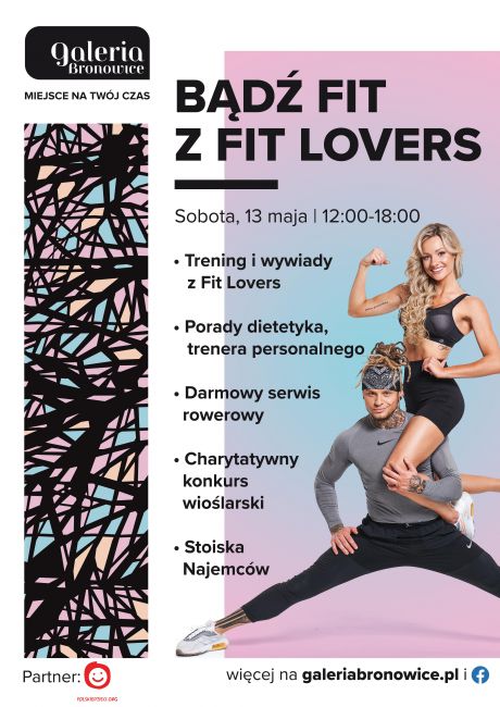 Już w najbliższą sobotę, 13 maja, Galerię Bronowice odwiedzi jeden z najbardziej rozpoznawalnych duetów w sieci - Fit Lovers. Pamela i Mateusz poprowadzą otwarty trening i podzielą się swoją wiedzą z zakresu zdrowego oraz świadomego trybu życia. W ramach wydarzenia zaplanowano też m.in. konkursy z nagrodami, spotkania z dietetykami i trenerami personalnymi, charytatywną zabawę wioślarską oraz warsztaty bokserskie.