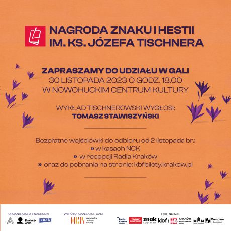 Serdecznie zapraszamy na uroczyste wręczenie tegorocznej Nagrody Znaku i Hestii im. ks. Józefa Tischnera.
