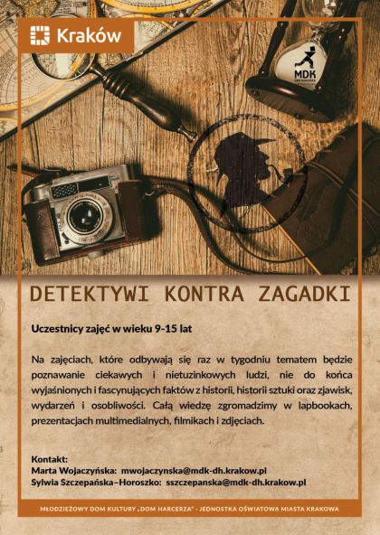 Zapraszamy na zajęcia „Detektywi kontra zagadki” - MDK "Dom Harcerza", ul.Reymonta 18, Kraków