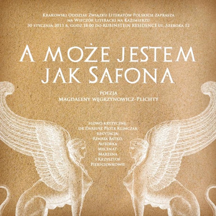 ZWIĽZEK LITERATÓW POLSKICH - ODDZIAŁ KRAKOWSKI ORAZ FUNDACJA "MAXIMUM" ZAPRASZAJĽ DO "RUBINSTEIN RESIDENCE" NA KAZIMIERZU na wieczór poezji MAGDALENY WĘGRZYNOWICZ-PLICHTY i promocję najnowszych wierszy z tomu "ARTEFAKTY".