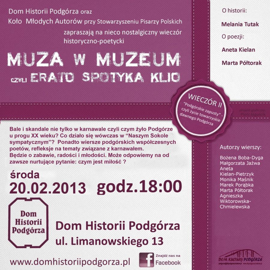 Dom Historii Podgórza oraz Koło Młodych Autorów przy Stowarzyszeniu Pisarzy Polskich zapraszajš na II wieczór z muzami: poezji i historii.