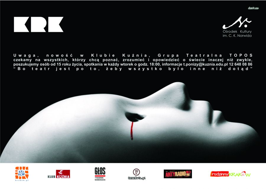 Grupa „TOPOS” to otwarta grupa teatralna zajmujšca się twórczymi poszukiwaniami uniwersalnych wartoœci zaklętych w odwiecznych tematach konstytuujšcych kulturę i społeczeństwo. Grupa posługuje się bogatym językiem scenicznym sięgajšc zarówno po nowoczesne jak i tradycyjne techniki teatralne. Siedzibš i scenš grupy jest Klub KuŸnia Oœrodka Kultury im. C.K. Norwida w Krakowie.