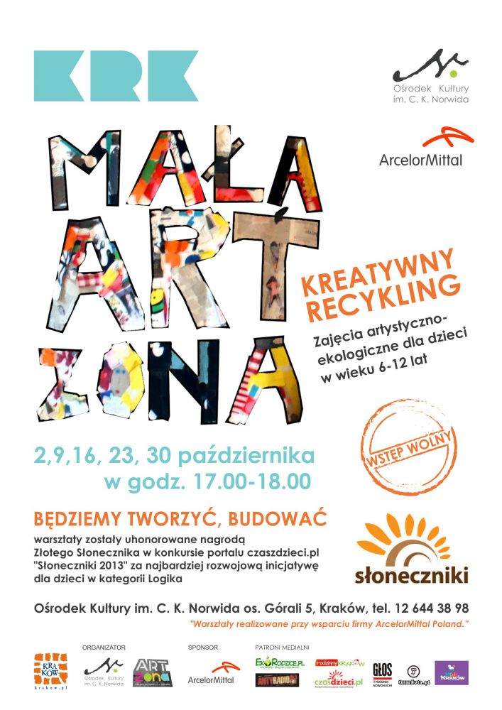 Mała ARTzona to warsztaty dla dzieci, wykorzystujšce kreatywne zabawy, upcykling, czyli wykorzystanie zużytych materiałów. Będziemy tworzyć zabawki, biżuterię i inne przedmioty. Pokażemy dzieciom jak przy odrobinie chęci można połšczyć oszczędnoœć, pożytecznoœć i œwietnš zabawę!