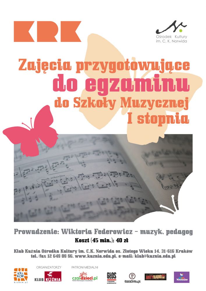 Wychodzšc naprzeciw ogromnemu zainteresowaniu edukacjš muzycznš i chęciš uczęszczania dzieci do Szkół Muzycznych, proponujemy od stycznia zajęcia sprawdzajšce muzyczne zdolnoci i predyspozycje przyszłego ucznia oraz przygotowujšce do egzaminu do Szkoły Muzycznej I stopnia.