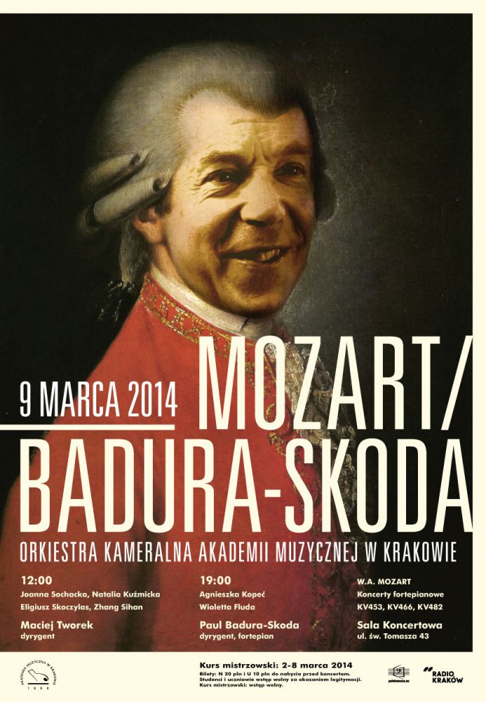 Niedzielę 9 marca okrelić można w kalendarzu koncertowym Akademii Muzycznej dniem fortepianu. Odbędš się wówczas dwa koncerty, podczas których studenci (Joanna Sochacka, Natalia Kumicka, Eligiusz Skoczylas, Zhang Sihan, Agnieszka Kopeć oraz Wioletta Fluda)z towarzyszeniem Orkiestry Kameralnej Akademii Muzycznej wykonajš Koncerty fortepianowe Wolfganga Amadeusza Mozarta: G-dur KV 453, d-moll KV 466, Es-dur KV 482. Koncert o godzinie 12:00 poprowadzi Maciej Tworek, natomiast wieczorem o godzinie 18:00 dyrygować będzie Paul Badura-Skoda. Możliwoć konfrontacji różnych wykonań tych samych utworów w jednym dniu i w tym samym miejscu, którym będzie Sala Koncertowa Akademii Muzycznej, stanie się z pewnociš niecodziennym i ciekawym dowiadczeniem.