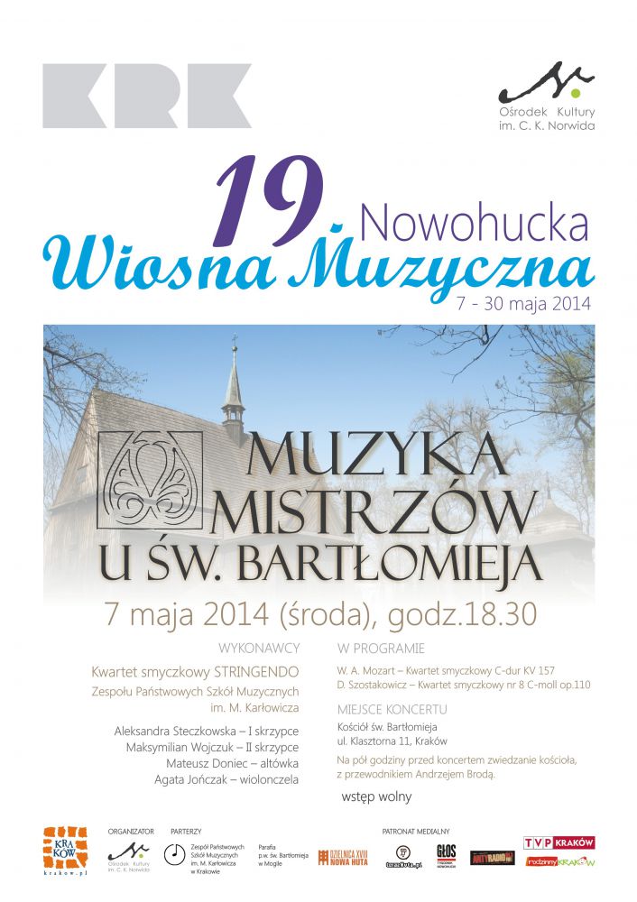 W ramach 19. Nowohuckiej Wiosny Muzycznej Orodek Kultury im. C. K. Norwida serdecznie zaprasza na koncert Muzyka Mistrzów u w. Bartłomieja.