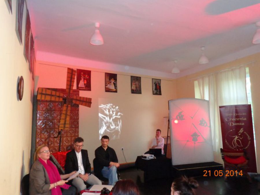 fot. D.Kosek-Turowska/na zdjęciu: na pierwszym planie - prowadzšca cykl A. Malatyńska-Stankiewicz oraz gocie poprzedniego spotkania: p. Zbigniew Szymczyk - Dyrektor Wrocławskiego Teatru Pantomimy im. H. Tomaszewskiego oraz Krzysztof Antkowiak - obecnie tancerz Baletu Dworskiego Cracovia Danza