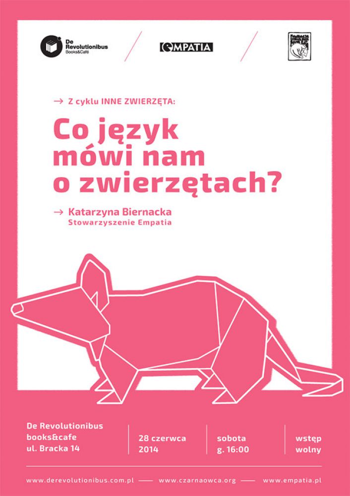 Fundacja Czarna Owca Pana Kota we współpracy ze Stowarzyszeniem Empatia i księgarniš De Revolutionibus. Books&Cafe zaprasza na spotkanie z Katarzynš Biernackš „Co język mówi nam o zwierzętach?”.