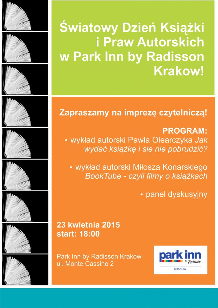 Serdecznie zapraszamy na spotkanie autorskie w hotelu Park Inn by Radisson Kraków organizowane z Okazji Œwiatowego Dnia Ksišzki i Praw Autorskich.