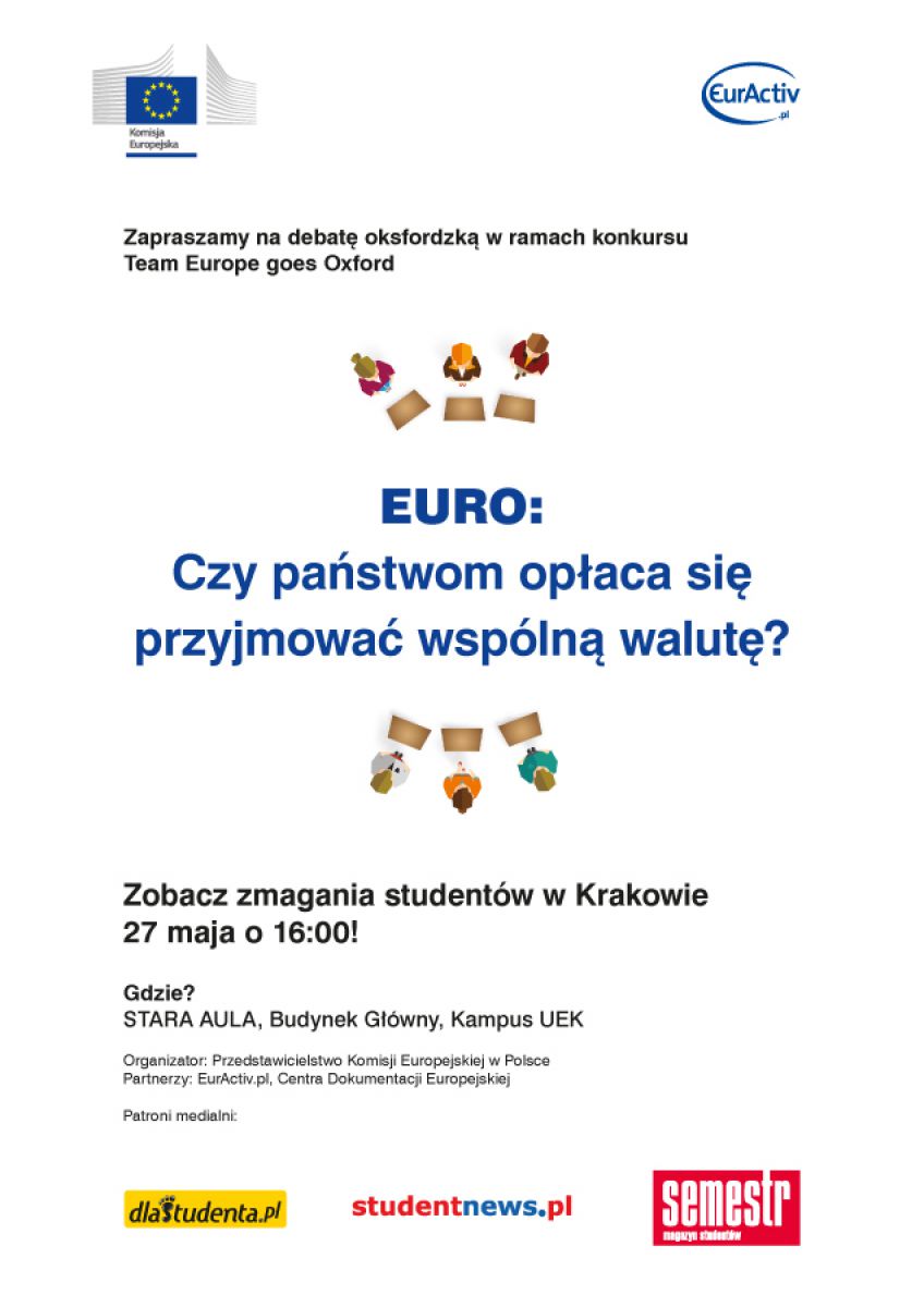 Debata oksfordzka Komisji Europejskiej, podczas której studenci UJ i UEK będš debatować na temat: Euro: czy państwom opłaca się przyjmować wspólnš walutę?