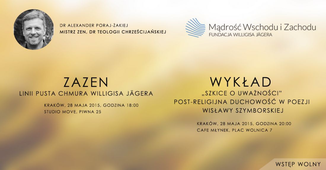 28 maja w Krakowie odbędš się dwa spotkania z Alexandrem Poraj-Żakiejem, mistrzem Zen, uczniem i jednym z następców Willigisa Jaegera. Obecnie pracuje on w Orodku Benediktushof w Niemczech, gdzie wraz z Willigisem uczy praktyki Zen linii Pusta Chmura.