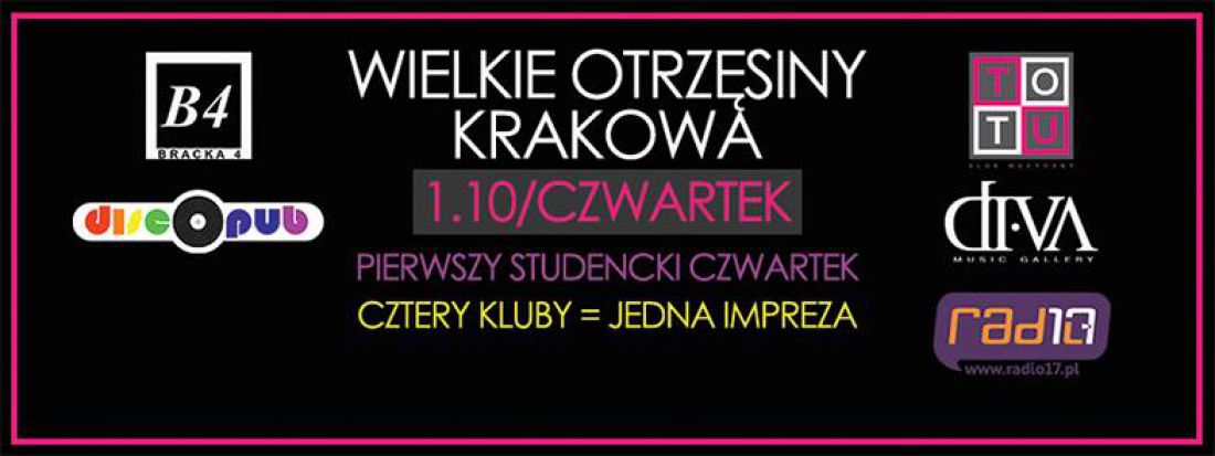 Na hasło: "CZTERY KLUBY JEDNA IMPREZA" odbierz opaskę upoważniajšcš do zniżek przez całš noc oraz darmowy wstęp do wszystkich czterech klubów.