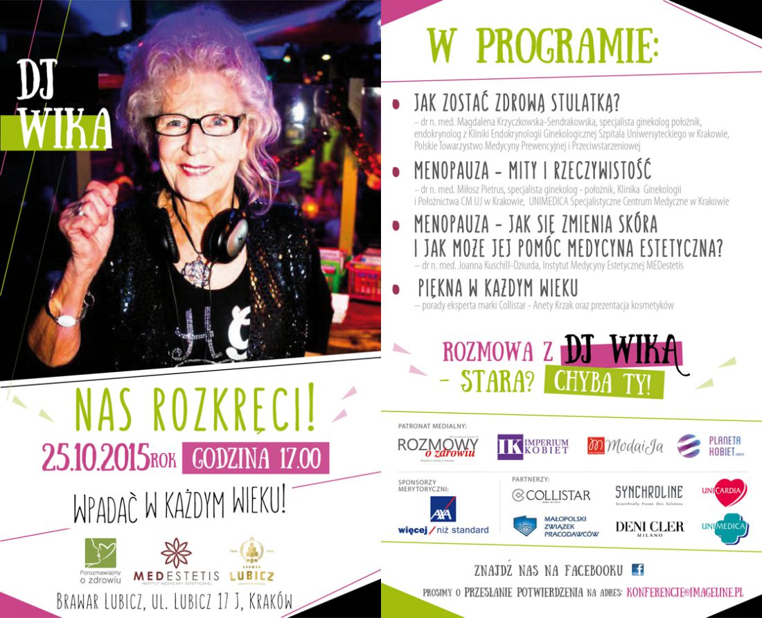 Kolejni prelegenci skupiš się na zagadnieniu menopauzy. Dr Miłosz Pietrus, ginekolog ze Specjalistycznego Centrum Medycznego UNIMEDICA, odrzuci krzywdzšce mity i szczerze opowie jak wyglšda menopauza i co możemy zrobić by złagodzić jej symptomy. Z kolei dr n.med. Joanna Kuschill – Dziurda, z Instytutu Medycyny Estetycznej MEDestetis opowie co dzieje się ze skórš kobiet w tym szczególnym czasie i przedstawi sposoby na poprawienie jej wyglšdu. Porad urodowych użyczy też ekspertka włoskiej marki kosmetycznej Collistar.