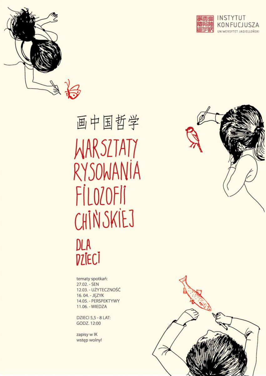 Instytut Konfucjusza w Krakowie serdecznie zaprasza dzieci w wieku 5,5 8 lat w najbliższš sobotę 27 lutego o godz. 12:00 na pierwsze zajęcia z nowego cyklu Warsztaty rysowania filozofii chińskiej.