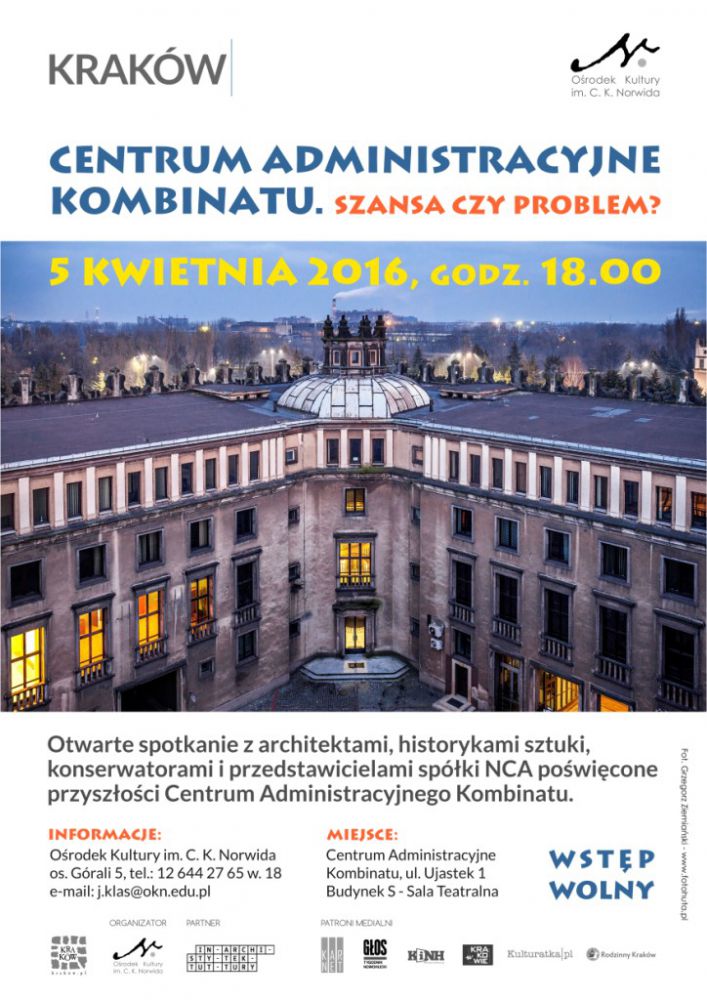 Otwarte spotkanie z architektami, historykami sztuki, konserwatorami i przedstawicielami Spółki NCA powięcone przyszłoci Centrum Administracyjnego Kombinatu.