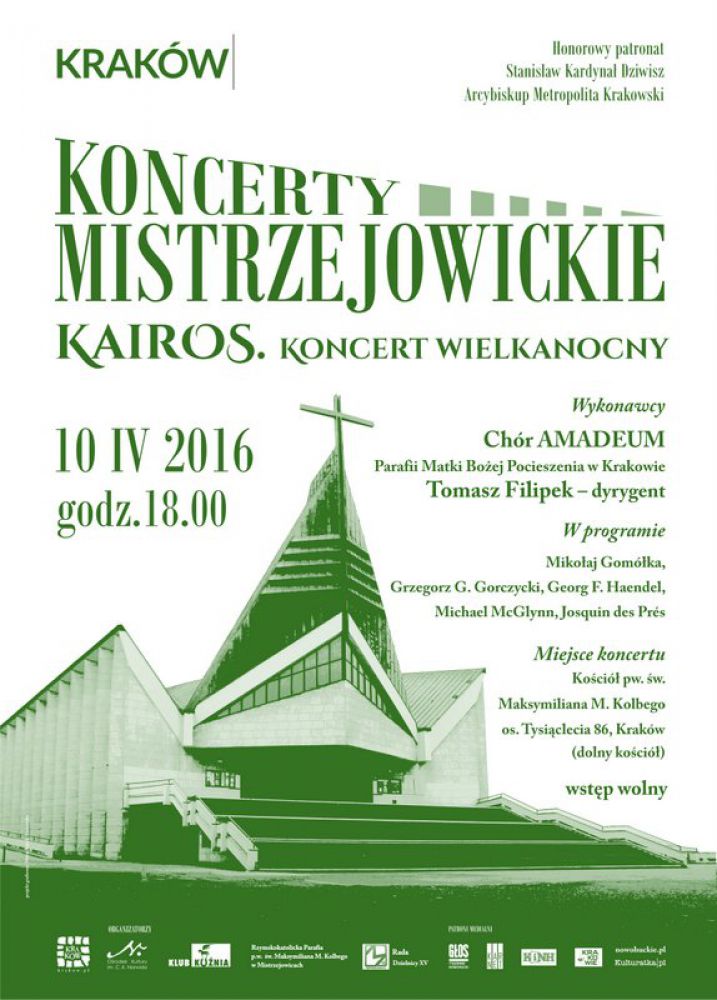 Wykonawcy: Chór AMADEUM, Tomasz Filipek dyrygent. W programie m.in.: Mikołaj Gomółka, Grzegorz G. Gorczycki, Georg Händel, Michael McGlynn, Josquin des Prés