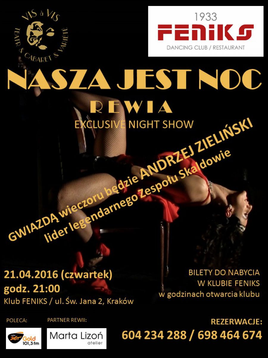A wszystko to w formie przepełnionej tańcem, œpiewem i muzykš Rewii „NASZA JEST NOC”…