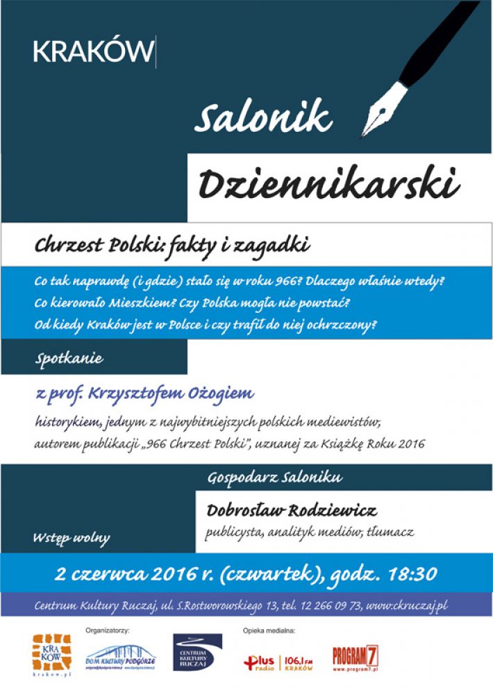 Gociem Dobrosława Rodziewicza będzie prof. Krzysztof Ożóg, historyk, jeden z najwybitniejszych polskich mediewistów, autor publikacji "966. Chrzest Polski", uznanej za Ksišżkę Roku 2016.