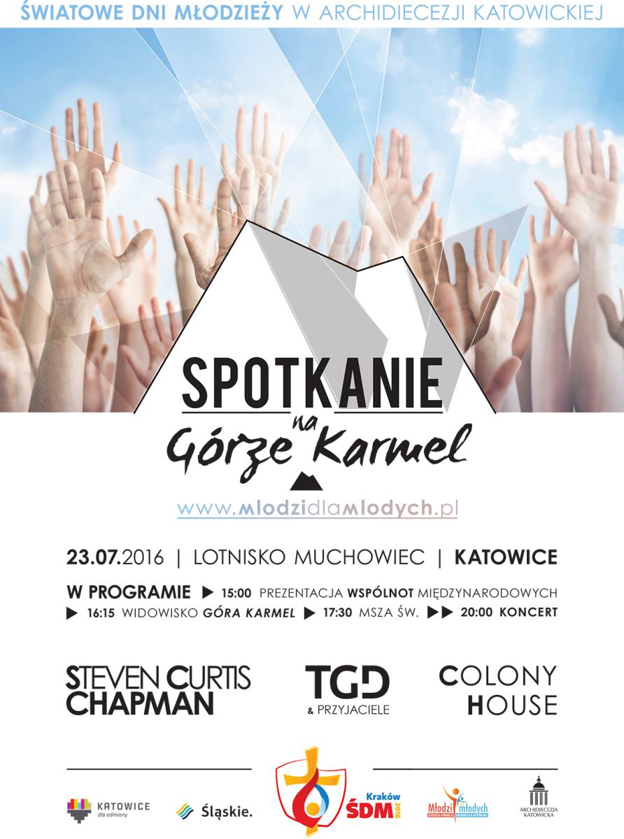 23 lipca 2016 roku na katowickim lotnisku Muchowiec odbędzie się Spotkanie na Górze Karmel dedykowanych wiatowym Dniom Młodzieży Kraków 2016.