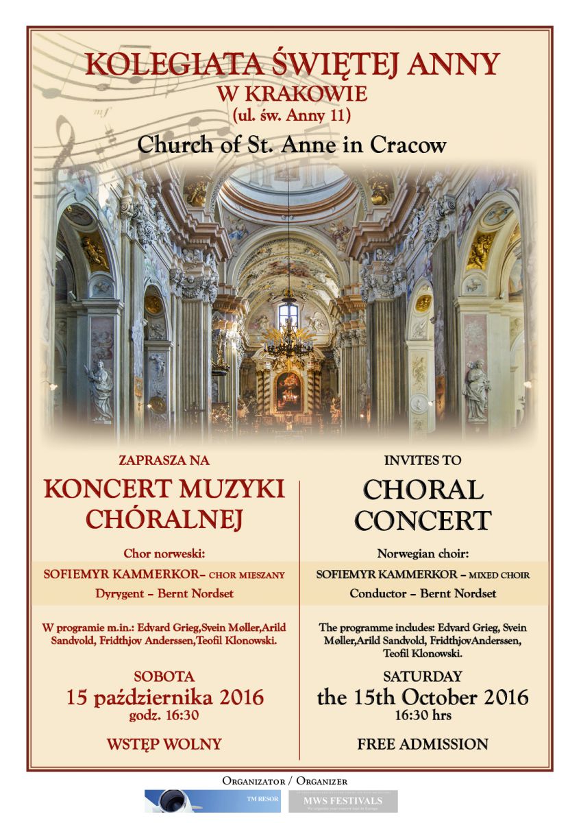 Koncert chóru norweskiego SOFIEMYR KAMMERKOR w Kolegiacie Œw.Anny