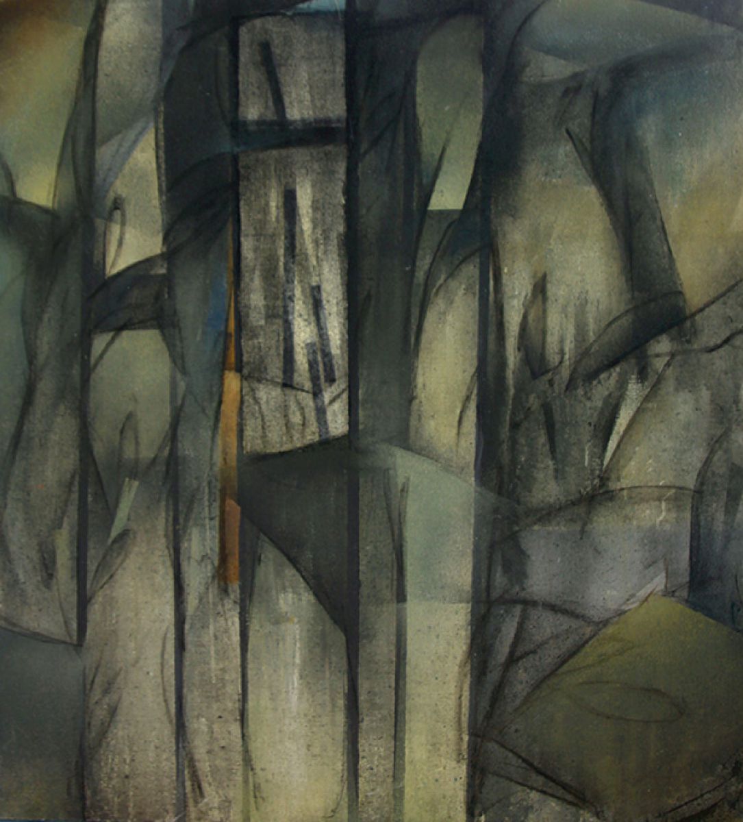 Kokornakowy blues to symboliczna nazwa motywów zielnikowych, poród których dominuje kokornak. W letnie upalne dni jego gigantyczne licie tworzš gęstš powłokę altany, jakby chłodnej jaskini, w której można się schronić przed promieniami słonecznymi. Kokornak tworzy swoje formy biologiczne z rozmachem, który inspiruje do ekspresyjnych i szkicowych, niewyspekulowanych działań malarskich. Lucjan Orzech