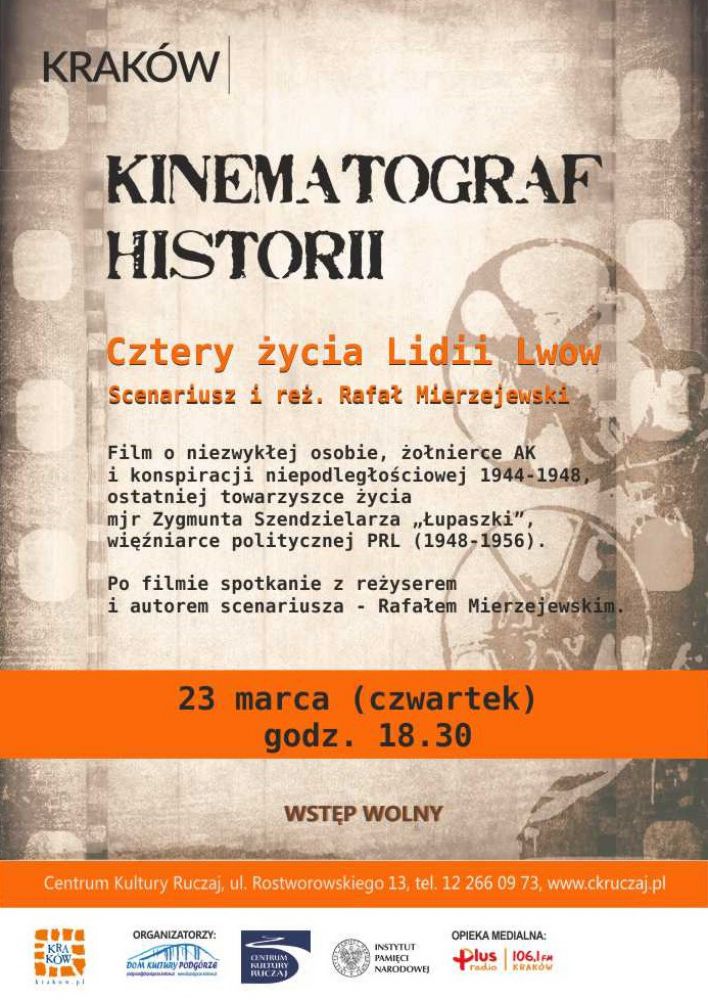 Projekcja filmu o niezwykłej osobie, żołnierce AK i konspiracji niepodległoœciowej 1944-1948, ostatniej towarzyszce życia mjr Zygmunta Szendzielarza „Łupaszki” oraz spotkanie z reżyserem i autorem scenariusza Rafałem Mierzejewskim.