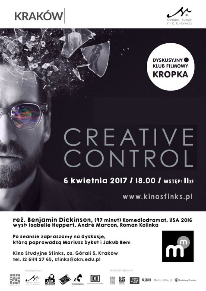 Dyskusyjny Klub Filmowy Kropka zaprasza 6 kwietnia o godz. 18.00 na film Creative Control w reæ. Benjamina Dickinsona; po seansie zapraszamy na dyskusjź, któr¹ poprowadz¹ Mariusz Sykut i Jakub Bem.