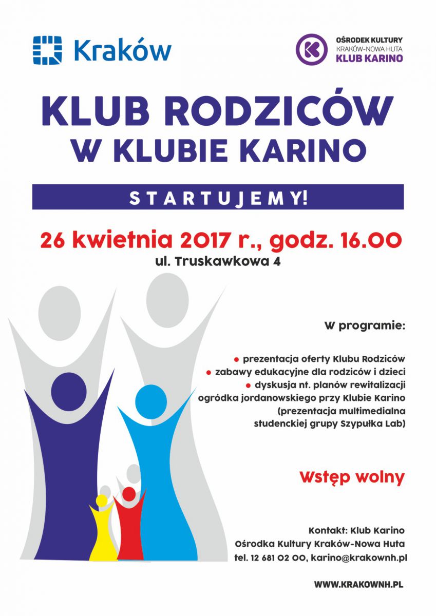 Klub Karino Orodka Kultury Kraków-Nowa Huta (ul. Truskawkowa 4) zaprasza rodziców i dzieci na spotkanie organizacyjne nowo powstałego Klubu Rodziców.