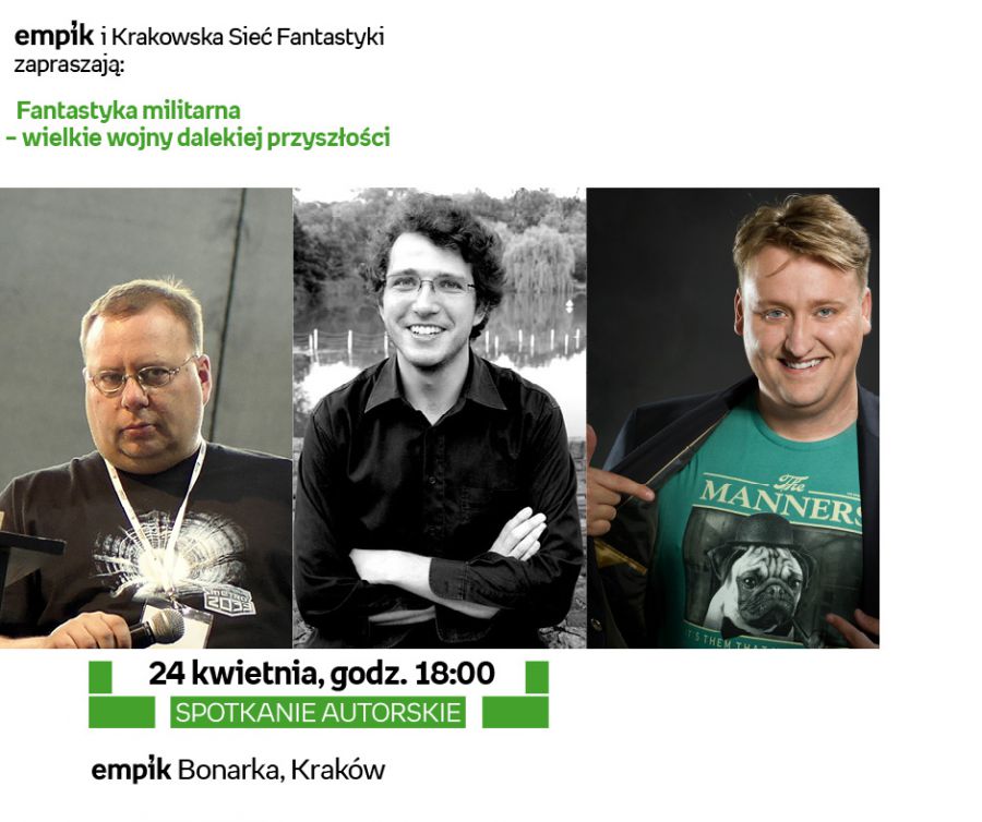 Czy w przyszłym œwiecie ogromnych możliwoœci konflikty nie będš możliwe do uniknięcia? Kto będzie rozstawiać pionki i figury na galaktycznych szachownicach i o jakš stawkę toczyć się będš rozgrywki? Jak pisać o futurystycznych wojnach i dlaczego lubimy o nich czytać? Na te, a także wiele innych pytań odpowiedzš fantastyczni pisarze: Michał Cholewa, Paweł Majka i Simon Zack podczas panelu dyskusyjnego, na który zapraszajš empik oraz Krakowska Sieć Fantastyki.