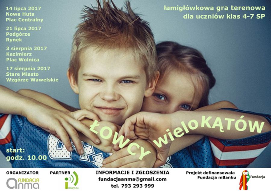 Gra łšczy zabawę matematycznš z atrakcyjnym prezentowaniem dzieciom zabytków Krakowa, co stanowi dodatkowš wartoć edukacyjnš, podkrelajšc jednoczenie elementarnš funkcję matematyki w architekturze. Przewidujemy 4 realizacje 14 lipca,21 lipca,3 sierpnia i 17 sierpnia. Zgłoszenia przyjmujemy pod adresem fundacjaanma@gmail.com.Zgło sie już dzi.