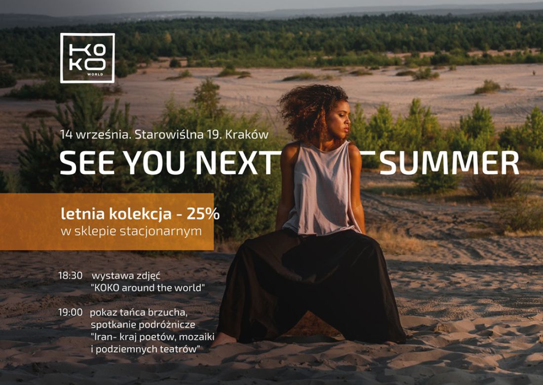 W planie także pokaz tańca brzucha, wystawa zdjęć "KOKO around the world". W tym dniu wszystkie letnie projekty zostanš przecenione o 25%.