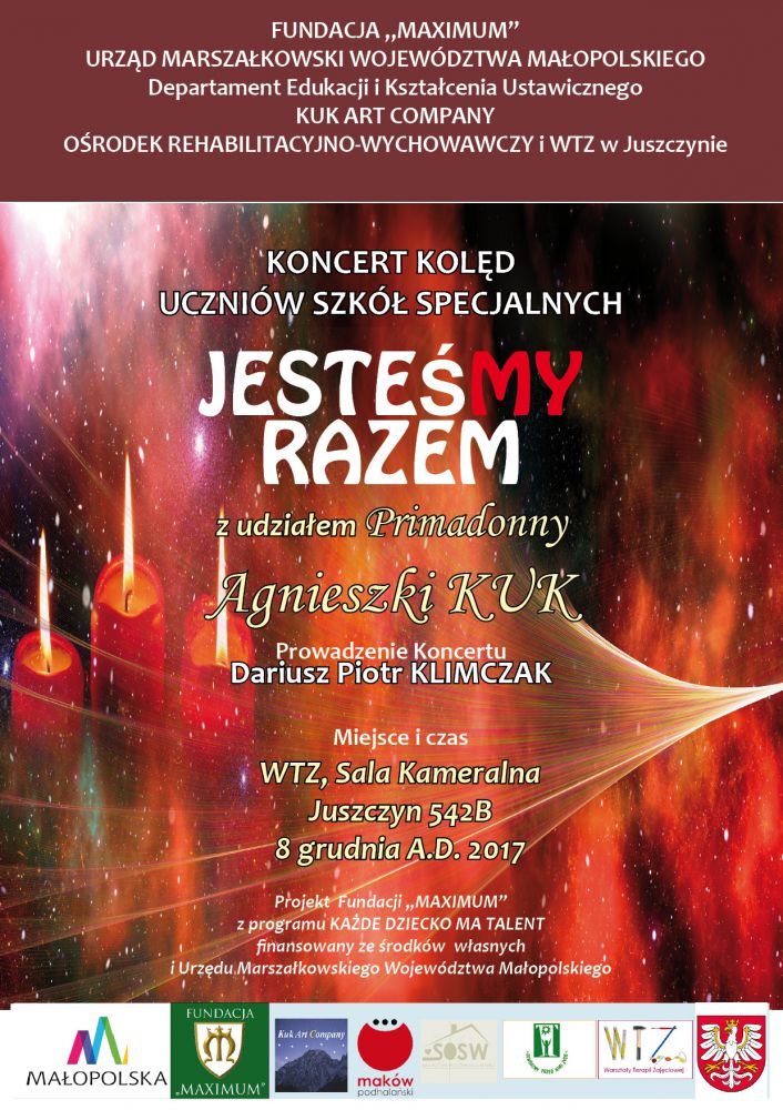 W ramach projektu Fundacji "Maximum" zapraszamy na Koncert Kolęd Uczniów Szkół Specjalnych "Jesteœmy Razem".