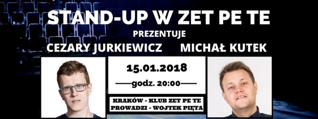 Zapraszamy na kolejnš edycję stand-upu w Zet Pe Te! Na pierwsze wydarzenie w 2018 roku przyjedzie mocna ekipa z grupy Stand-up Polska, czyli znany m.in. z występów w telewizji i wielu największych roastów - Cezary Jurkiewicz, oraz zyskujšcy ostatnio na popularnoœci Michał Kutek. Wszystko poprowadzi Wojtek Pięta! :)