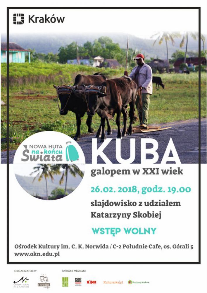 Kuba - wyspa jak wulkan goršca, nawet w porze deszczowej. Trochę wymarzona, trochę z przypadku. Podczas spotkania zobaczycie dużš częć "must see" z przewodników. Przejdziemy się po ulicach Hawany, trochę powspinamy i przejedziemy konno w Viniales, ale to nie wszystko. Czeka was także spontaniczna wyprawa z miejscowym przewodnikiem, który zabierze nas w dzikš podróż "camionem" na wschodniš częć Kuby, gdzie spędzimy parę dni z jego wspaniałš rodzinš. Pokaże nam też ukryty w dżungli wodospad i zaprowadzi do biblioteki w Moa. Wspomnę też ciut o historii i obecnej sytuacji oczami mieszkańców. Chcesz zobaczyć to na własne oczy i poczuć tropikalny klimat? Przyjd i dowiedz się więcej. Może będzie to dla Ciebie inspiracjš na własnš kubańskš przygodę.