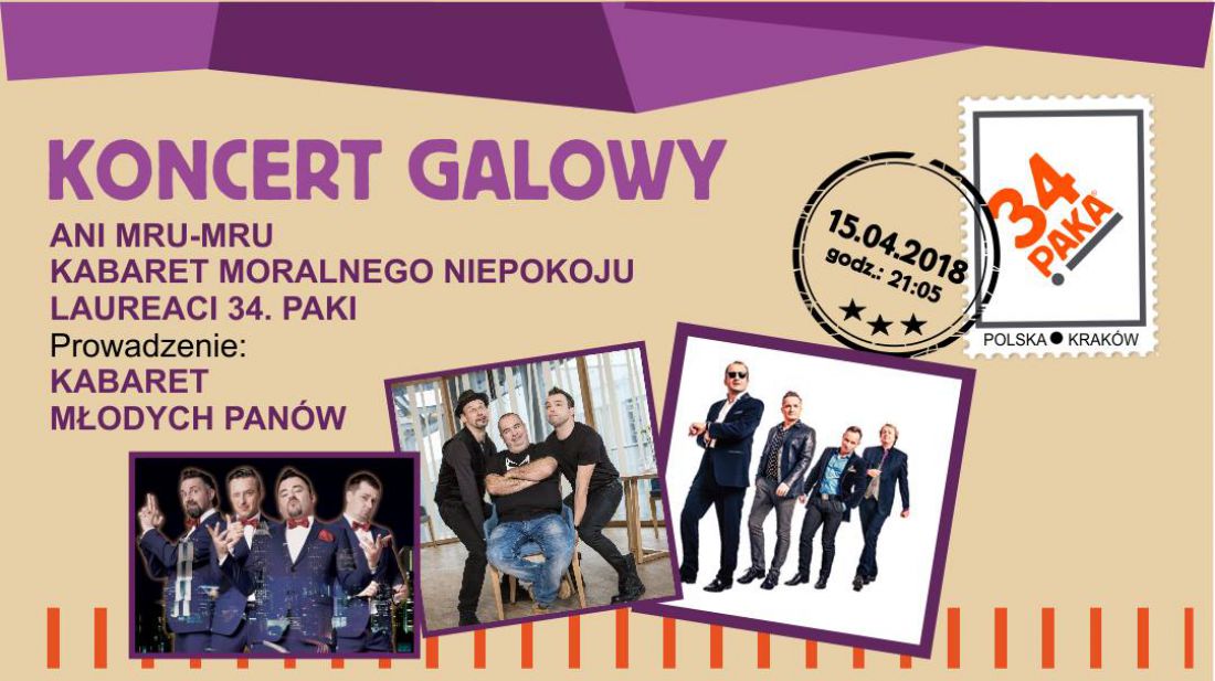 Podsumowanie 34. PAKI – wieczór najnowszych i najbardziej utytułowanych laureatów PAKI. Zaprezentujš się zarówno Ci œwieżo upieczeni, jak i zdobywcy najwyższych laurów PAKI – Grand Prix sprzed lat: Kabaret Moralnego Niepokoju i Kabaret Ani Mru-Mru . Zobaczymy skecze premierowe i te, za które jury pakowskie przyznało GRAND PRIX lata temu. Razem, wspólnie z widzami przed telewizorami zobaczymy na żywo defiladę skeczy największych przodowników kabaretu. Całoœć poprowadzš dumni laureaci PAKI – Kabaret Młodych Panów.