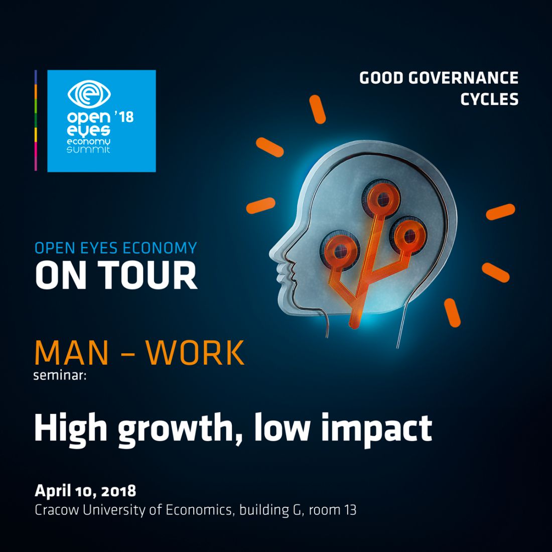 10 kwietnia Uniwersytet Ekonomiczny w Krakowie stanie się forum dyskusji na temat tego, czy da się wytwarzać więcej, zużywajšc mniej. Wszystko za sprawš seminarium pt. High growth, low impact ze specjalnym wykładem prof. Roberta Jessopa z Uniwersytetu w Lancaster. To już kolejne międzynarodowe wydarzenie w Krakowie realizowanie w ramach cyklu Open Eyes Economy on Tour, będšcego częœciš Open Eyes Economy Summit 2018.