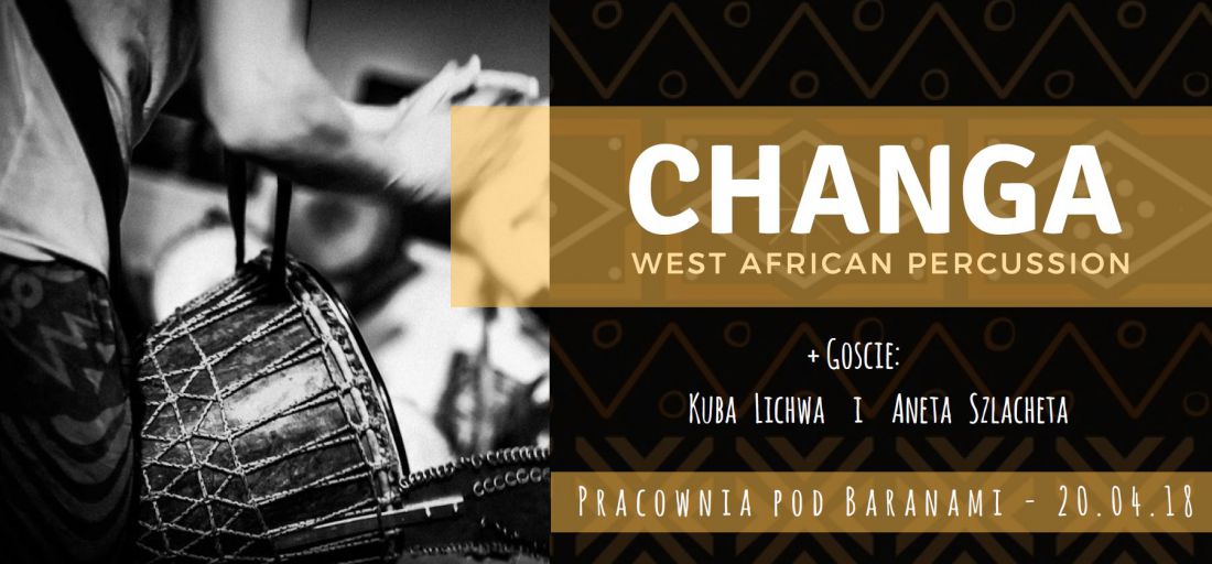 Grupa Changa zawišzała się na poczštku 2017 roku z inicjatywy Marcela Zambrzyckiego. Repertuar zespołu opiera się o energetyczne i jednoczeœnie transowe utwory inspirowane tradycyjnš muzykš perkusyjnš Afryki Zachodniej. Skład tworzš pasjonaci muzyki afrykańskiej i gry na bębnach z Krakowa – Ewa Olszowska, Katarzyna Zadora, Andrii Vedomyr Volynko oraz Marcel Zambrzycki. Swoje aranżacje grupa wykonuje na tradycyjnym instrumentarium zachodnioafrykańskim m.in. djembe, bębnach basowych dundun, dzwonkach, balafonie oraz grzechotach. Mimo nieskomplikowanej budowy tych instrumentów, lata ewolucji rytmiki afrykańskiej pozostawiły niesamowite bogactwo różnych struktur rytmicznych wykonywanych w trakcie rozmaitych okazji takich jak œwięta, wesela, praca, obrzędy itd. Zapraszamy na rytmicznš podróż po naszych interpretacjach rytmów Czarnego Lšdu:)!