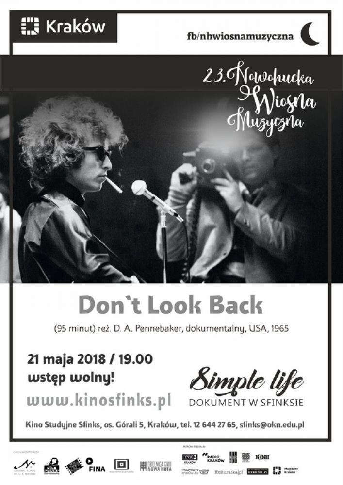 Pokaz filmu pt. „Don`t Look Back” w reżyserii D. A. Pennebakera. Majowy seans jest wydarzeniem towarzyszšcym 23. Nowohuckiej Wioœnie Muzycznej. Wstęp wolny.
