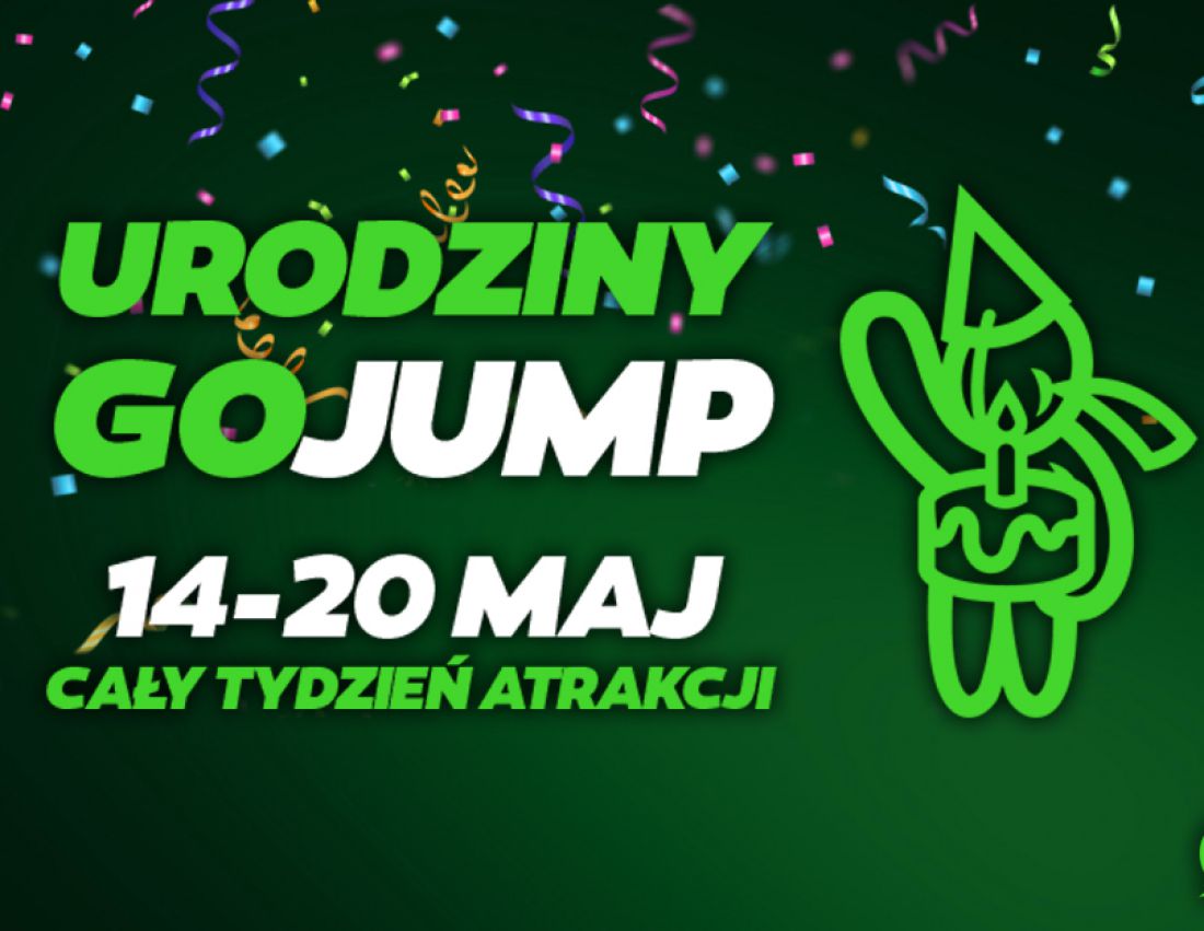Największe Parki Trampolin w Małopolsce obchodzš swoje urodziny! Z tej okazji GOjump przygotował dla Was aż 7 dni szalonych atrakcji dla Małych i Dużych skoczków! więtowanie będzie trwało w dniach 14-20 maja!